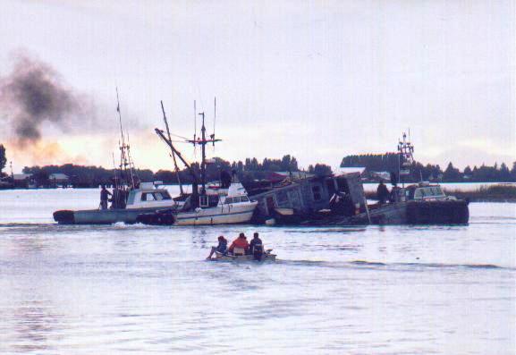 rushed to the assistance of the stricken barge and its tow boat crew. Unable to