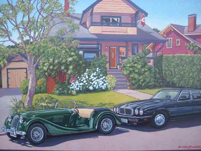 For instance through the car I met Michael Stockdale, a talented local artist who lives down the street from me and who painted the work of art on this page which he entitled "Dave's Wheels".